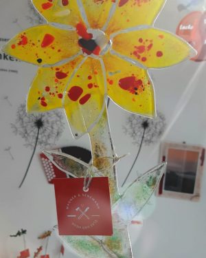 Herzstecker aus Glas in allen Farben möglich. Höhe etwa 30 cm.